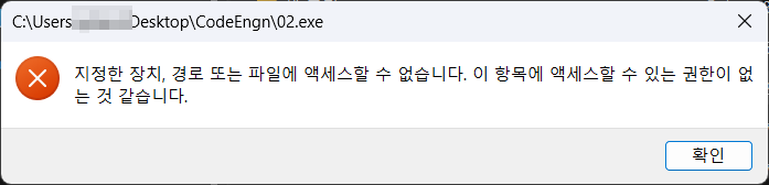 실행 시 보이는 화면은 위와 같다. 해당 오류 메시지를 보여주면서 프로그램을 실행할 수 없다.