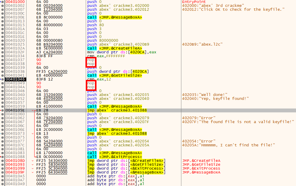파일 저장 후 abex' crackme 3을 실행해 보면 성공 메시지가 출력된다.