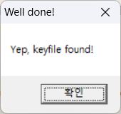 프로그램 실행 시 처음 나타나는 메시지는 위와 같다. OK버튼을 클릭 시 keyfile을 검사한다는 문구가 출력된다.