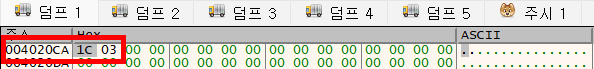 | hFile | 0x4020CA | 파일에 대한 핸들 값으로 해당 주소는 CreateFileA의 반환 값이다. |