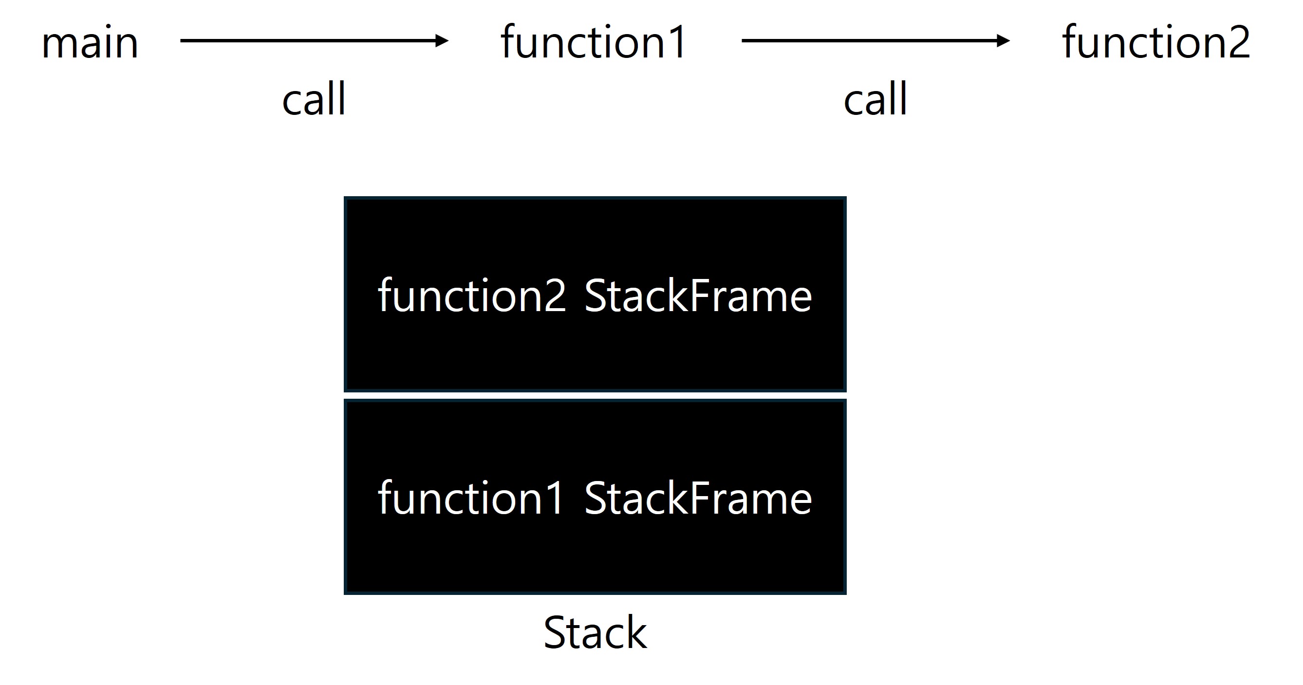 본격적으로 스택을 살펴보기에 앞서 알아두면 좋은것은 스택프레임은 함수를 호출할 때 마다 생성된다는 것이다. 한가지 유의할 점은 함수당 하나의 스택프레임을 가진다는 것이 아니라 "호출할 때 마다"라는 점이다.