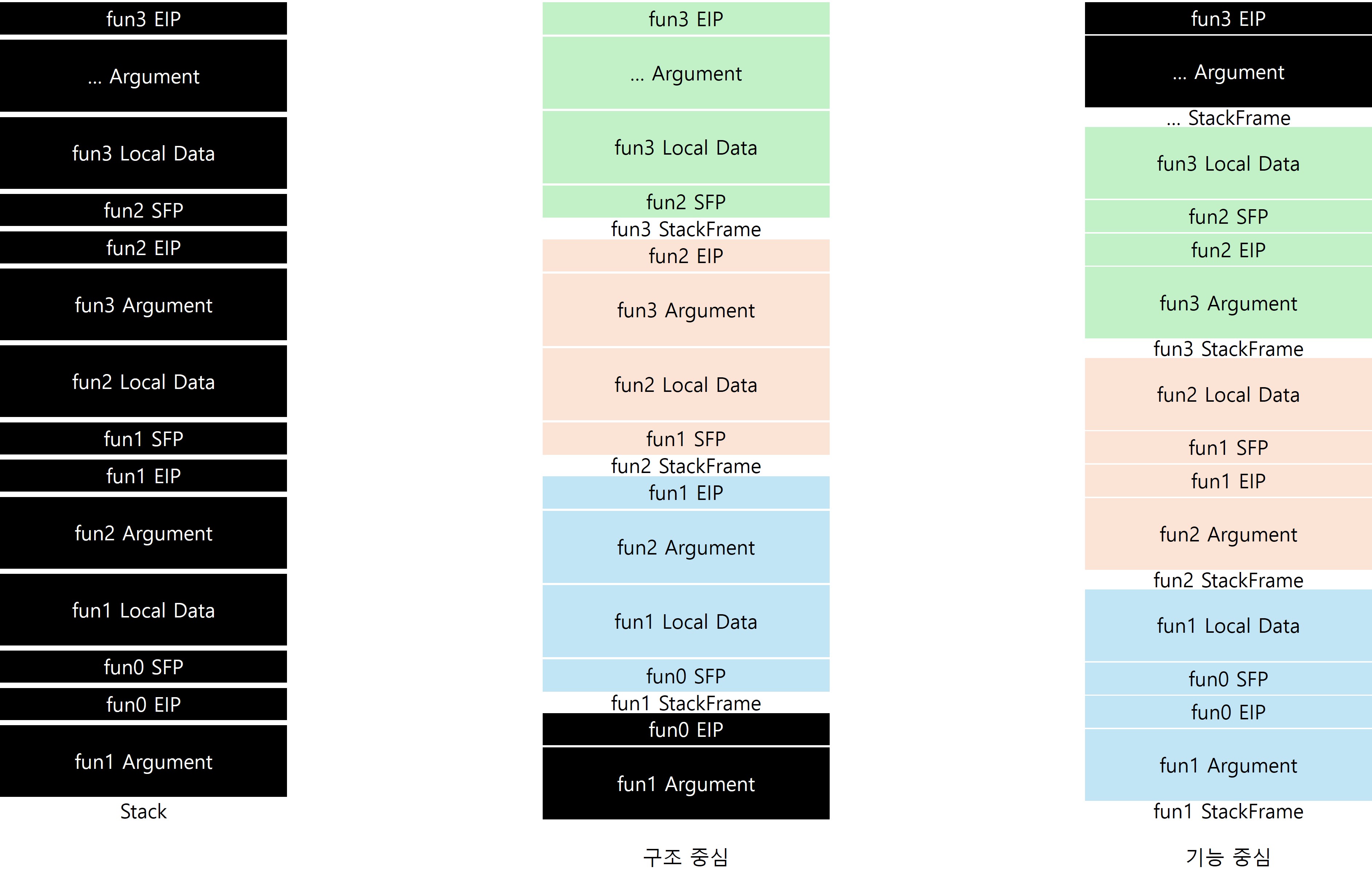 함수 내부에서 실질적으로 참조하거나 사용하는 데이터를 중심으로 SFP, Local Data, EIP, Argument의 영역을 통합해 하나의 프레임으로 본다.