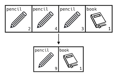 예를 들어 창고의 각 칸에 담겨있는 물건의 이름이storage = ["pencil", "pencil", "pencil", "book"], 각 물건의 개수가 num = [2, 4, 3, 1]이라면 연필과 책을 한 칸에 각각 겹쳐 쌓아 간단하게 clean_storage = ["pencil", "book"], clean_num = [9, 1]로 만들 수 있습니다.